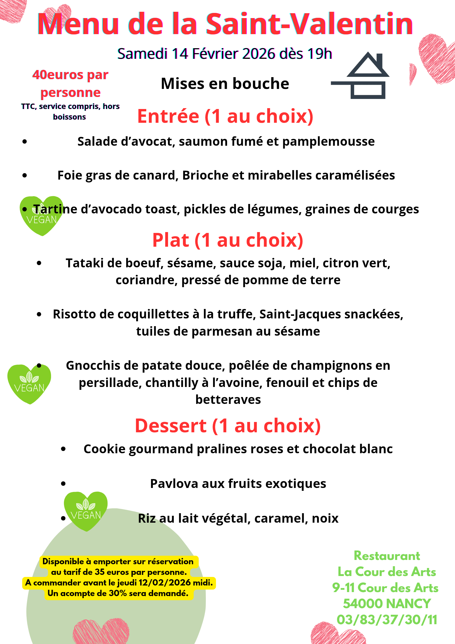 Menu à 38 euros, sur réservation